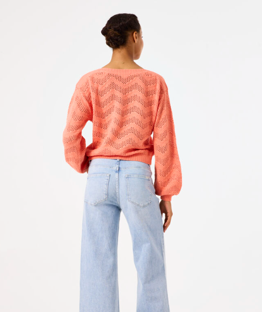 Sweater with openwork structure. Ideal for a fashionable look! The sweater has a round neck, long sleeves, and a regular fit. It is made of 60% cotton and 40% acrylic.