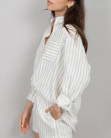 Linen Button Up top so cute paired with jeans or the Merry Drawstring Pants for that flowy summer look.