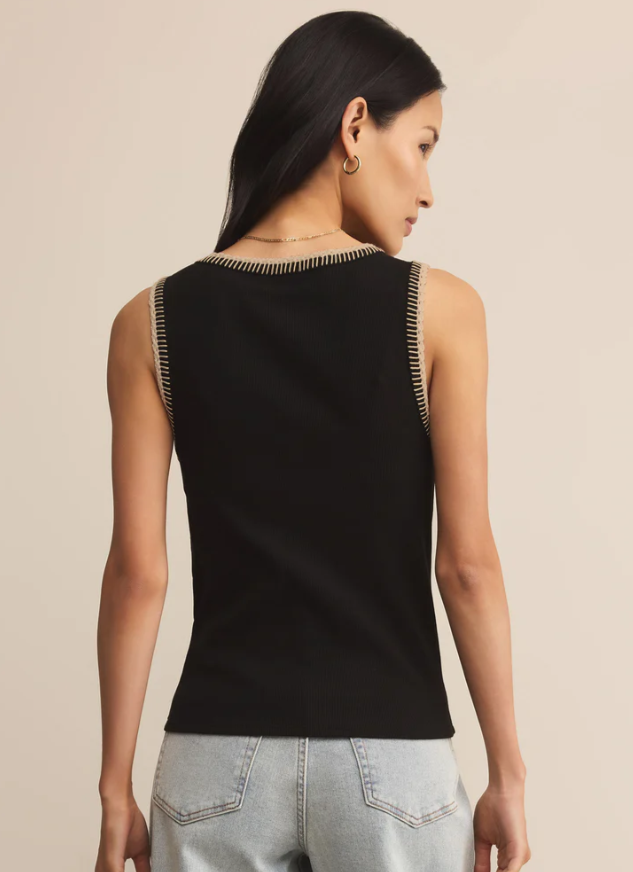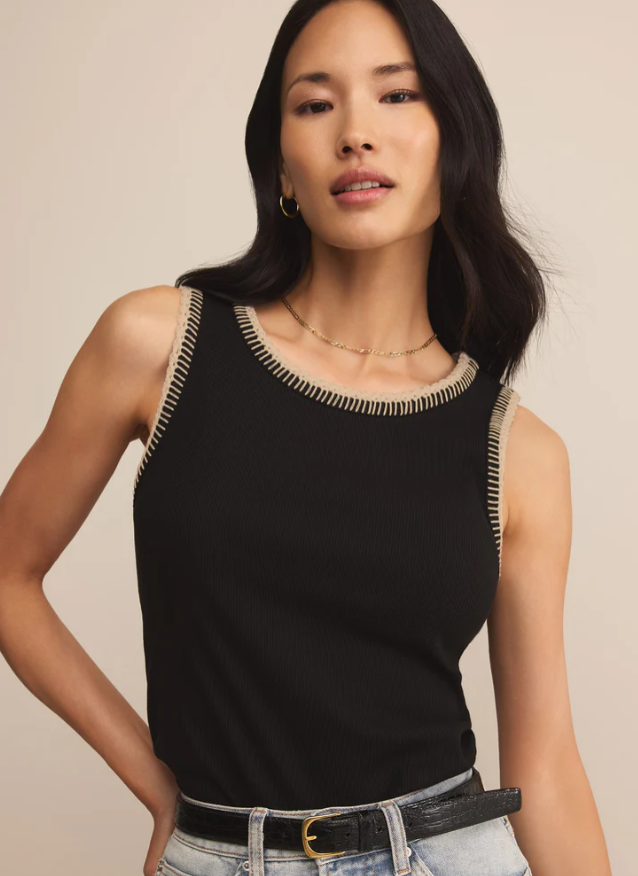Soft with a little something extra, this sleeveless tank features delicate whipstitch embroidery at the neckline and armholes. Crafted from our favorite Feather Rib fabric with a relaxed crew neck fit, it’s an effortless piece that feels anything but basic.