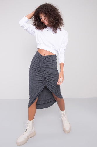 Anthracite Front Shirred Slit Midi Skirt