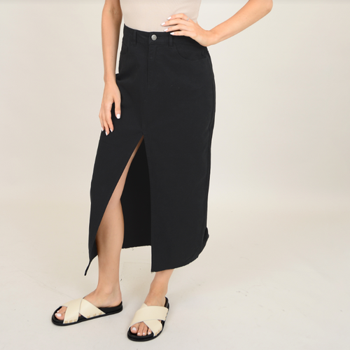 SERAPHINA STRETCH TWILL SKIRT W/ FRONT SLIT-BLACK